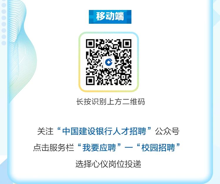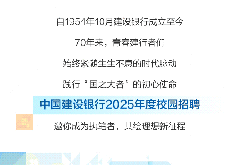 志向新金融,遇建趁年华。中国建设银行四川省分行诚邀您携手共进,以青春谱写金融工作“五篇大文章”,在全面建设社会主义现代化国家的火热实践中创造瑰丽人生!