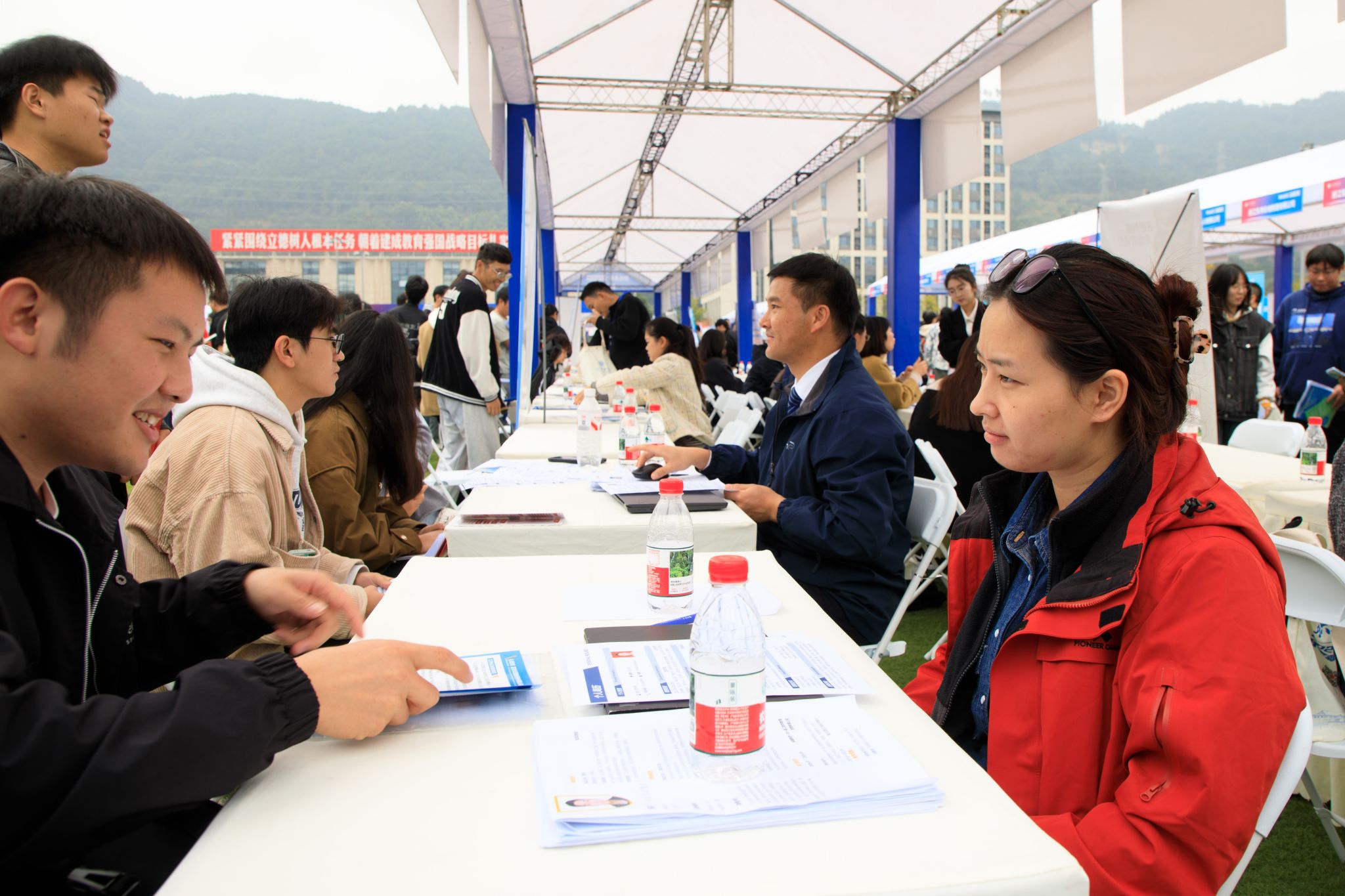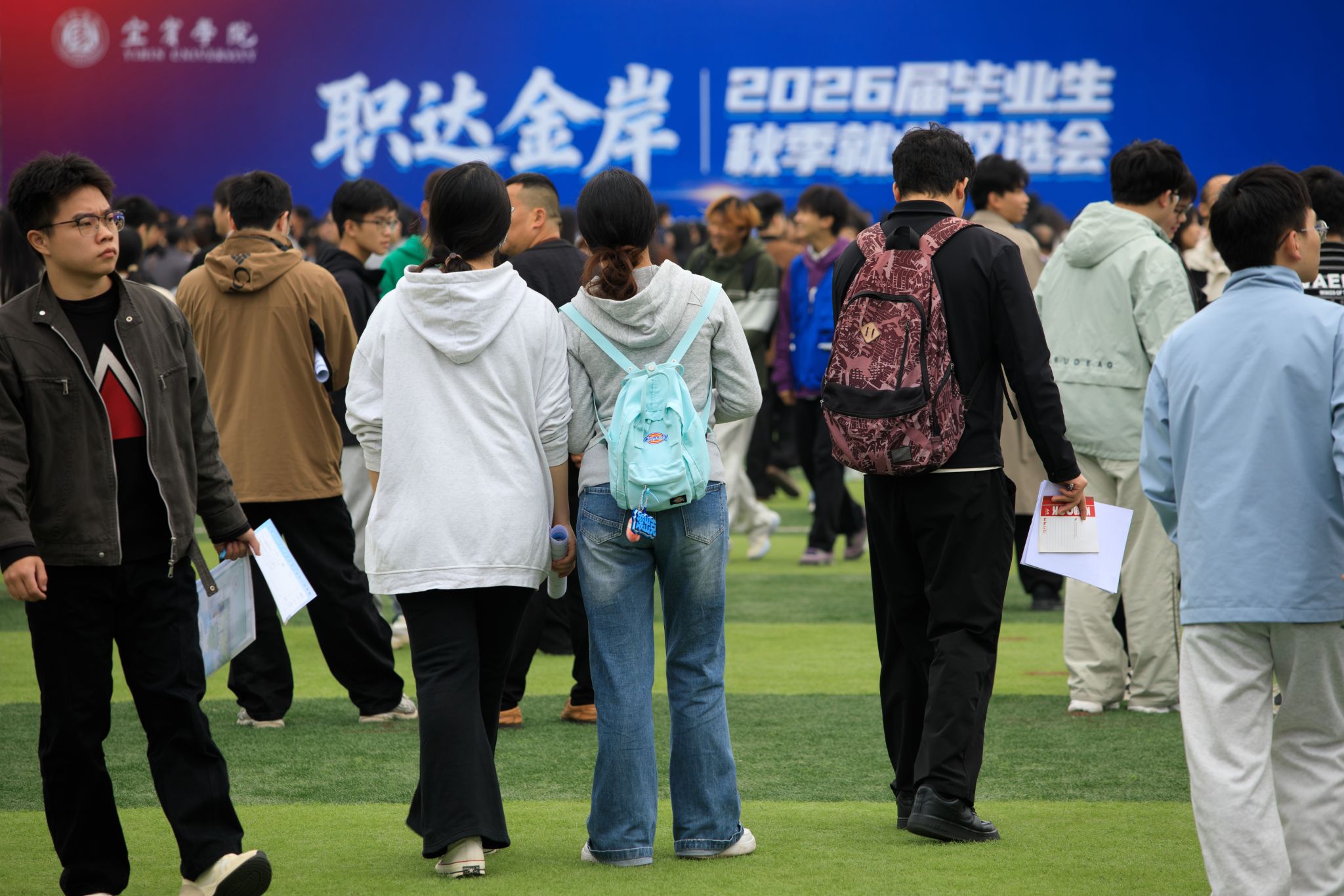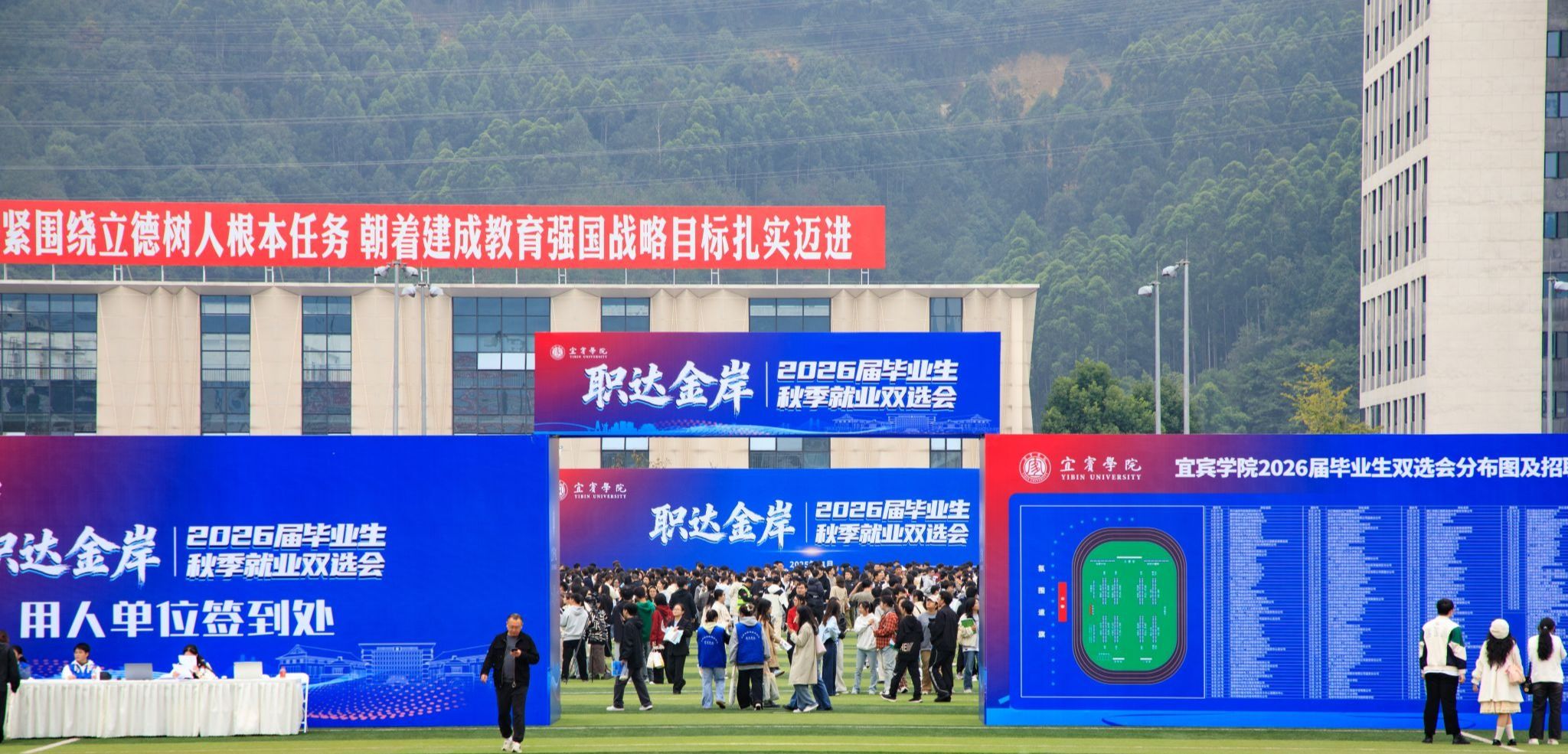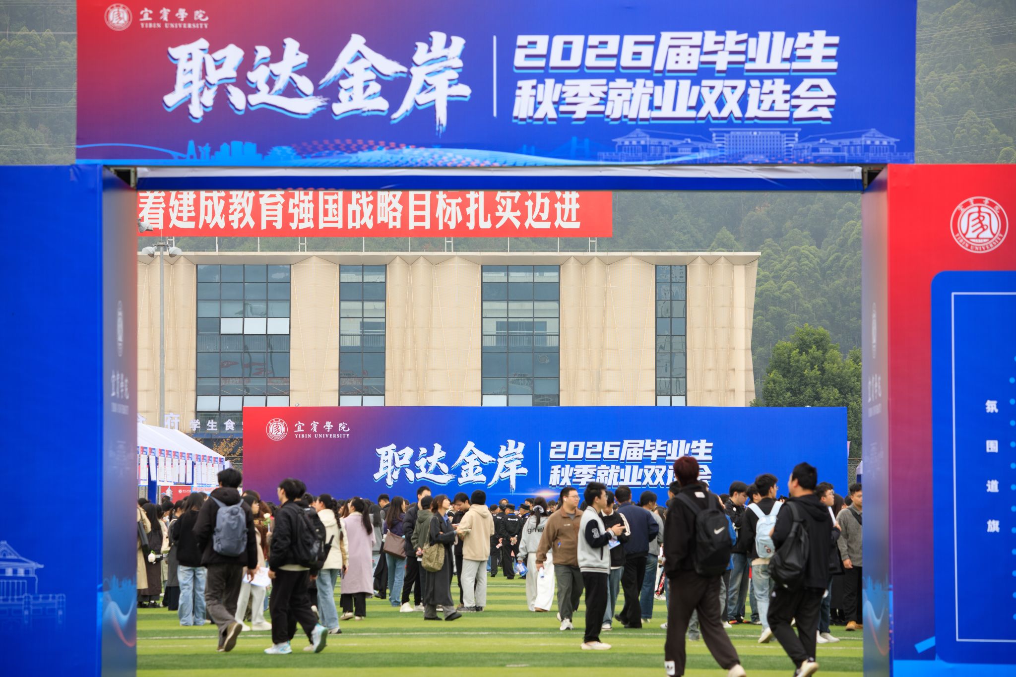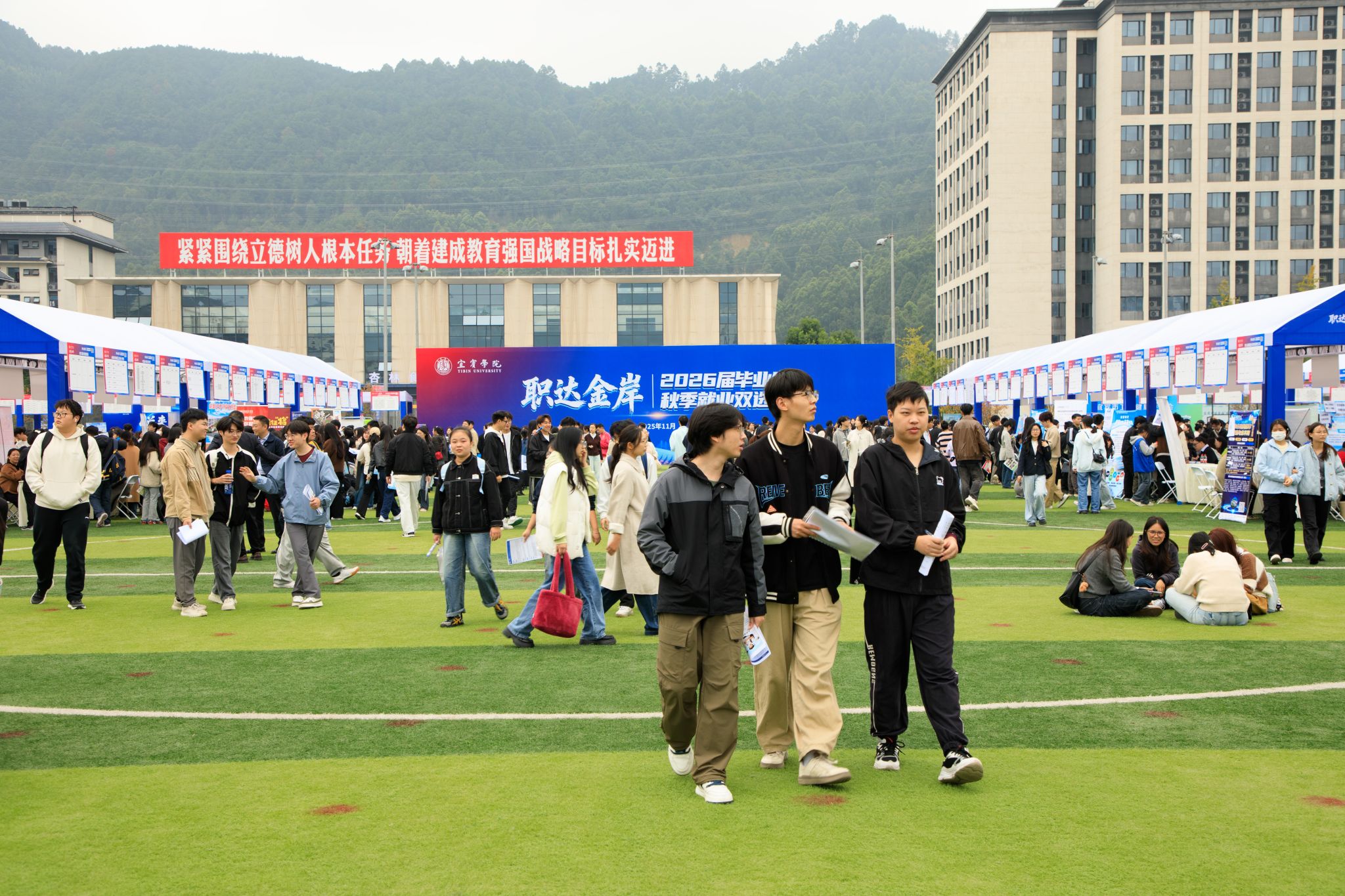 为深入贯彻党中央、国务院关于稳就业、保就业的决策部署,扎实推动毕业生更加充分、更高质量就业,11月5日,宜宾学院在临港校区运动场举办“职达金岸”2026届毕业生秋季就业大型双选会,近5000名毕业生踊跃参与,展现出宜宾学院学子们昂扬向上的精神风貌和积极求职的坚定信心。