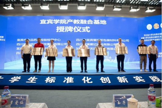 基于“质量与标准化”领域的产教融合基地建设事项也在开幕式上得以展示,中国标准化研究院、宜宾学院、宜宾市政府、南溪区政府共建的中国标准化研究院高质量发展创新基地(宜宾)举行了揭牌仪式;宜宾学院与宜宾市食品药品检验检测中心、四川省宜宾普拉斯包装材料有限公司等七家合作单位举行了产教融合基地建设的授牌仪式。